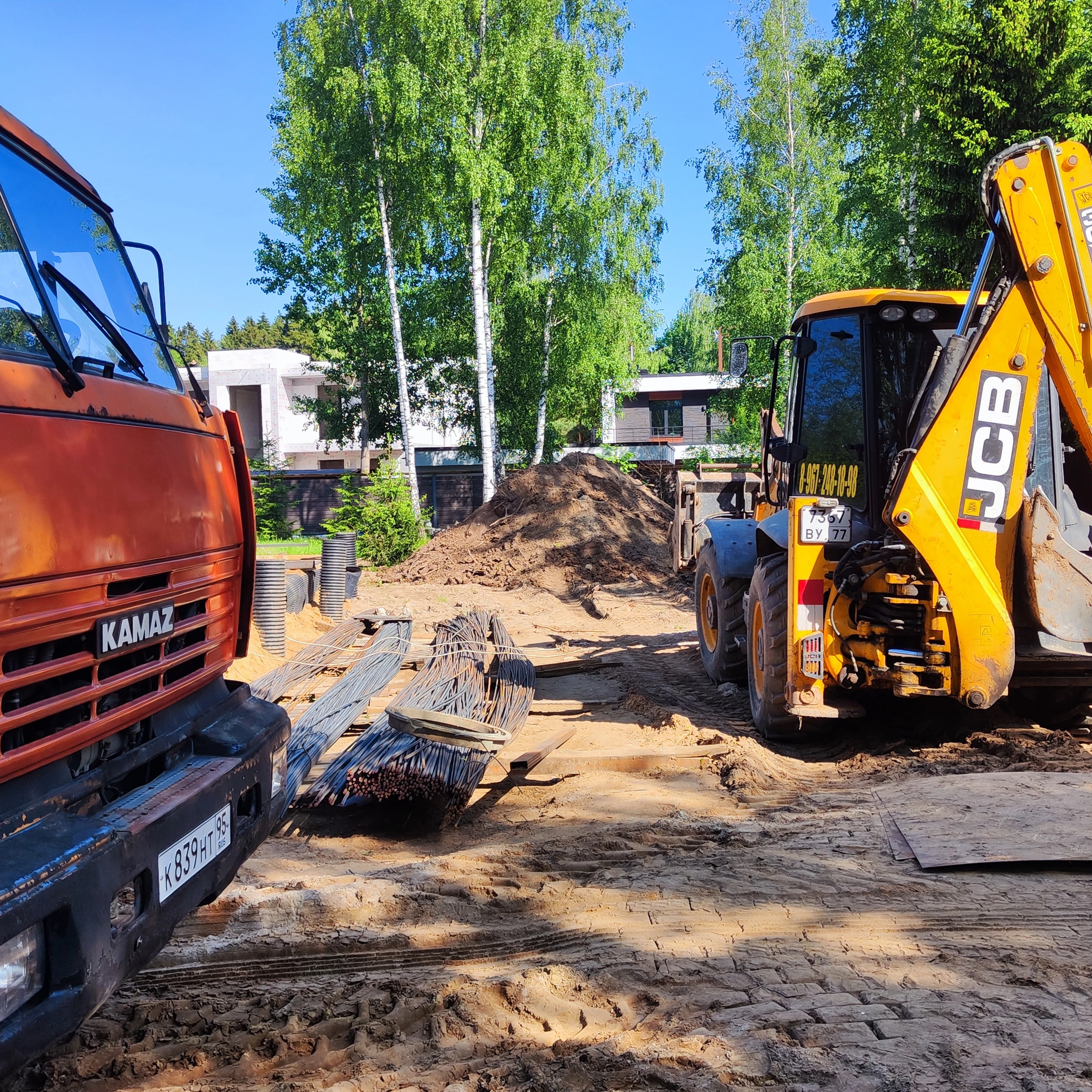 Для земляных и бетонных работ используем свою спецтехнику: экскаваторы, погрузчики, бетонные насосы, самосвалы. Это позволяет выходить на объект в нужный день и не зависеть от сторонних подрядчиков.